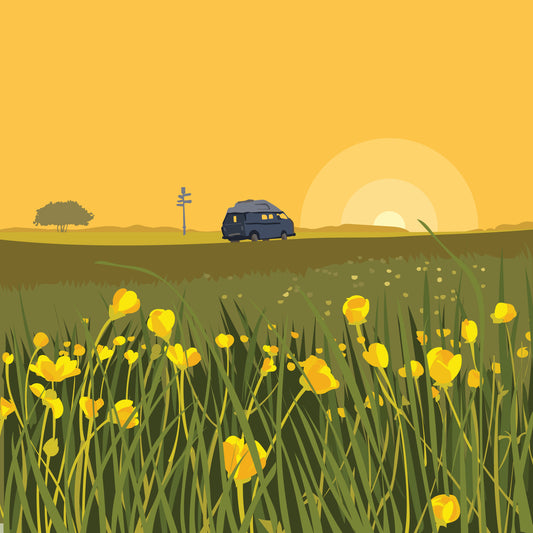 Colourful graphic illustrations of landscapes around the Cotswolds and coastlines of the UK by Nichola Kent