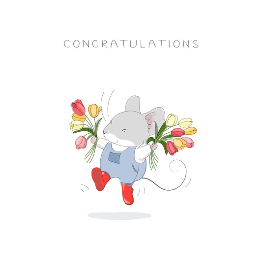 Congratulations Mouse with Tulips Card